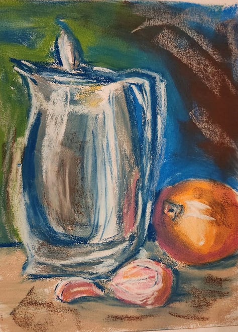 Bill has been taking drawing and painting classes at Slow River Studio, a wonderful, small local art school for adults who want to find out about painting and drawing.