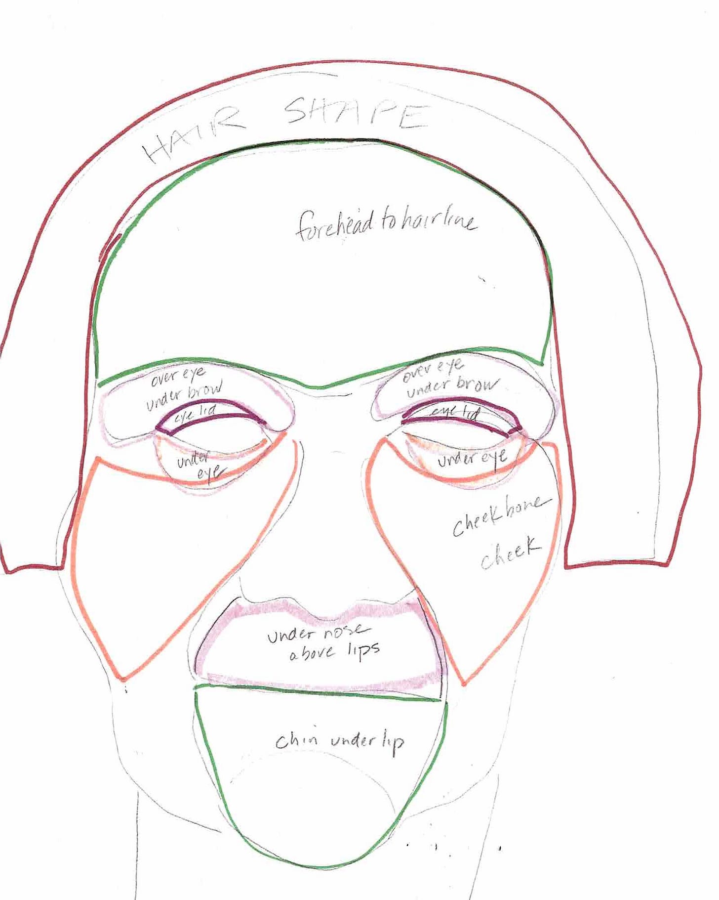 Years ago, I took a portrait class at Brookline adult ed. The instructor let us in on a wonderful secret of making faces. We come in all different formations of noses, foreheads, chins and eyebrows, ears, the shape of our hairdo!! The hand-out she gave us seemed like a bit of a throw-away at the time.